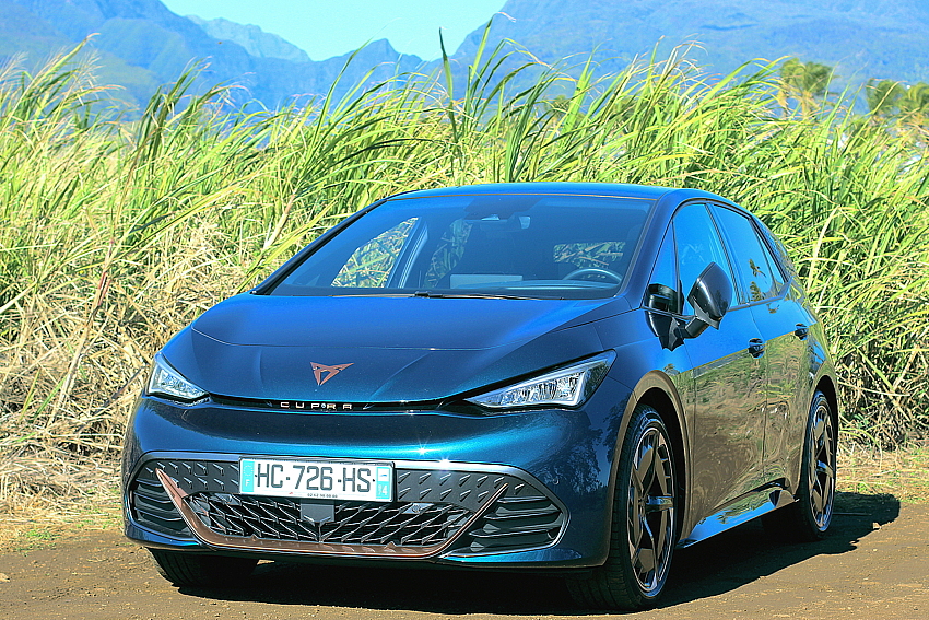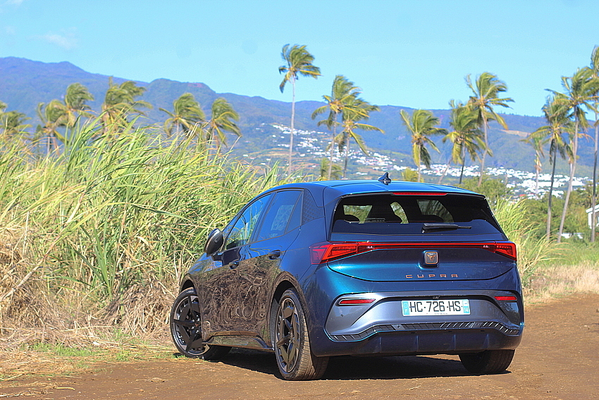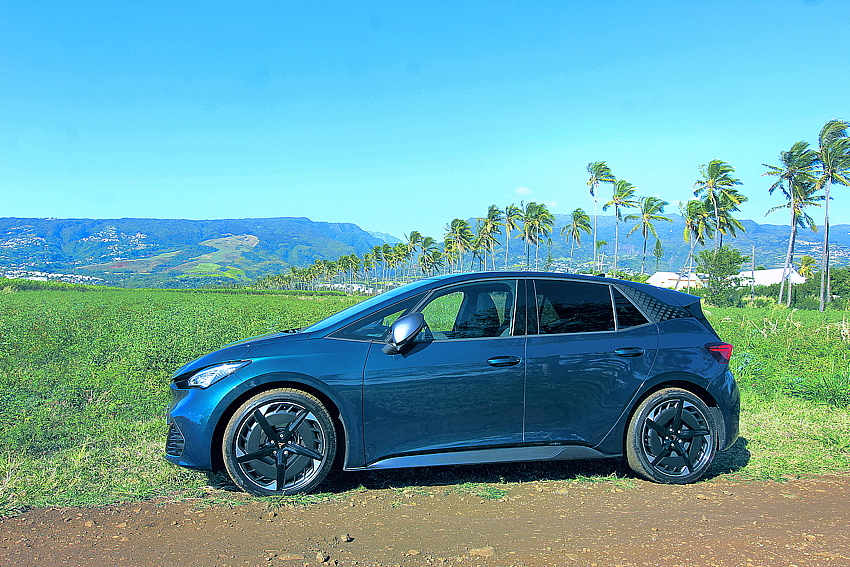Cupra dispose de trois modèles de Born, pour satisfaire les différents marchés. La Sogécore a fait le choix d’importer celle de 231 ch, avec la grosse batterie de 77 kHh, qui permet 2 tours de l’île, avec en «avantage-client Réunion» les roues de 20 pouces de la Veloz.