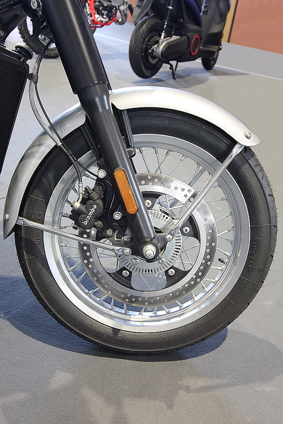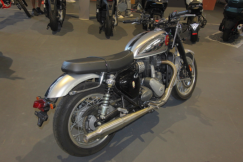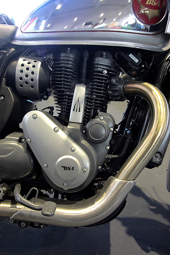 Le monocylindre de 652 cc développe 45 ch et il est extrapolé du moteur Rotax qui équipait autrefois les trails BMW monocylindres. La Goldstar offre un look néo-rétro «so british» qui cache un équipement «up to date», avec notamment le refroidissement liquide, l’injection électronique et l’ABS avant et arrière. Sans oublier le démarreur électrique (pas de kick).