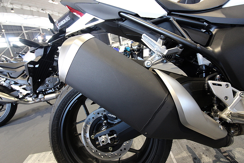Le millésime 2025 exposé à Motor Expo pèse 204 kg et délivre 220 chevaux à 13.000 tr/min et 127 Nm de couple à 10.800 tr-min, ce qui en fait une des superbikes de série les plus puissantes au monde, capable de rouler au dessus de 300 km/h. La moto est bardée d’électronique embarquée comme un avion de chasse, pour contrôler le cabrage, le freinage sur l’angle, le patinage à l’accélération, etc. bref, pour rester en vie !