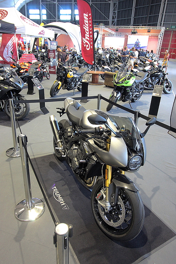 Le nom de famille Besnard est associé à deux grandes marques distribuées à La Réunion, Indian et Triumph, qui occupent des espaces de vente bien distincts mais dont les deux stands à Motor Expo 2025 sont adossés l’un à l’autre. La gamme Triumph comporte des trails routiers, des sportives, la mythique Rocket III (inclassable) et des néo-rétros, dont la somptueuse Bonneville.