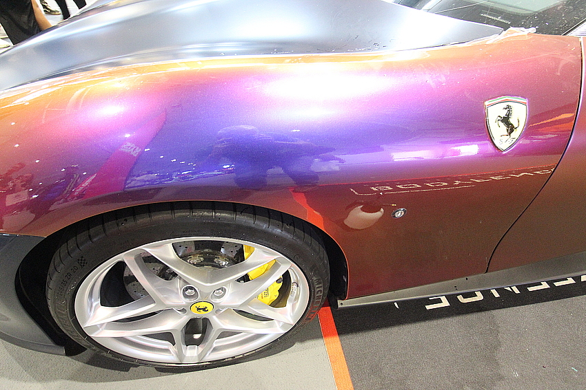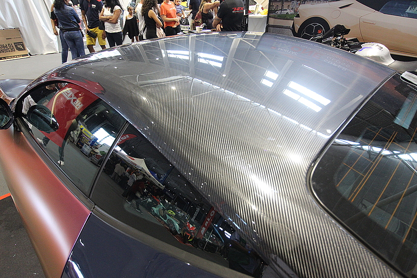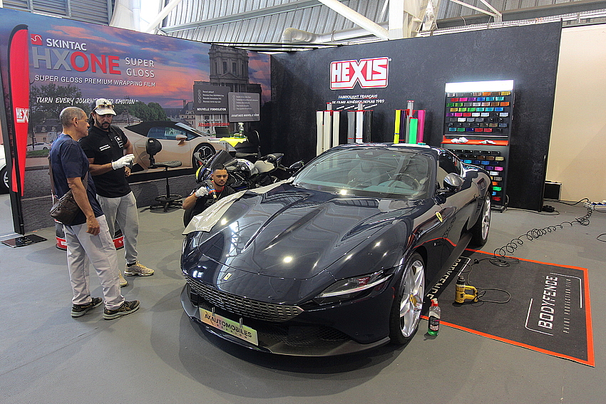 Hexis covering a réalisé des prouesses étonnantes sur la Ferrari Roma prêtée par Axautomobiles (mandataire installé dans la tour Cadjee), la faisant passer par toutes sortes de couleurs en posant et enlevant ses films, pour démontrer le talent des poseurs et surtout le fait que la voiture n’est absolument pas abîmée lors de l’intervention. Les films posés allaient du jaune vif au vert fluo en passant par l’effet carbone et un film faisait même apparaître la voiture rouge ou bleue selon l’angle de vue ! Bluffant.