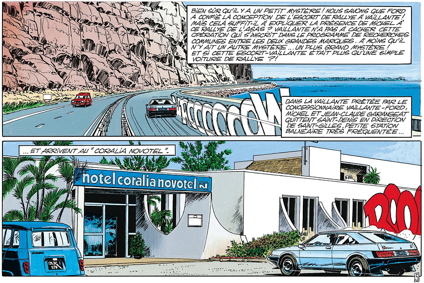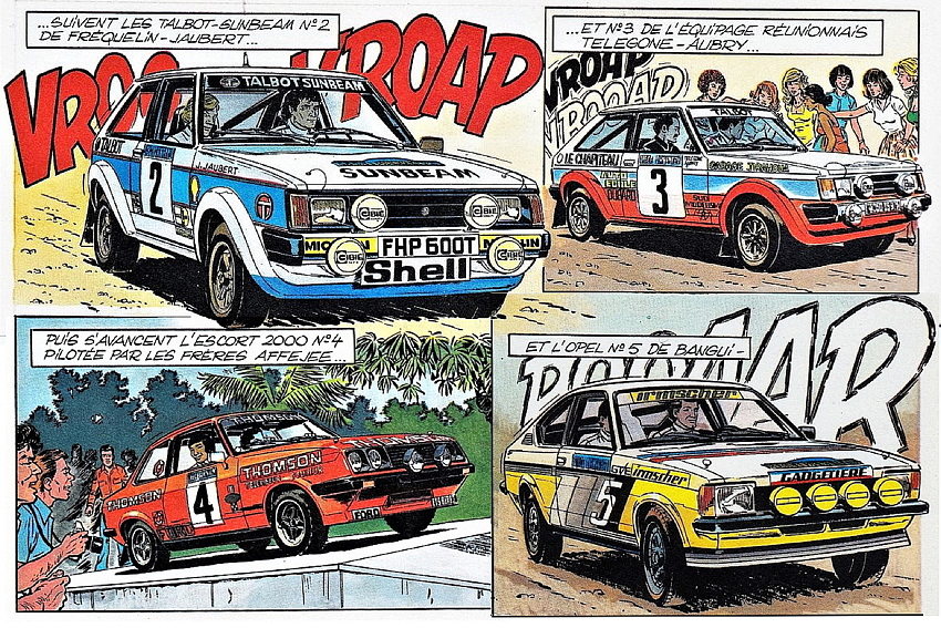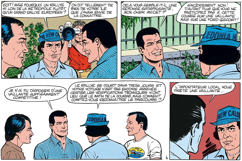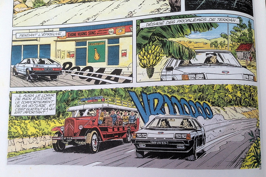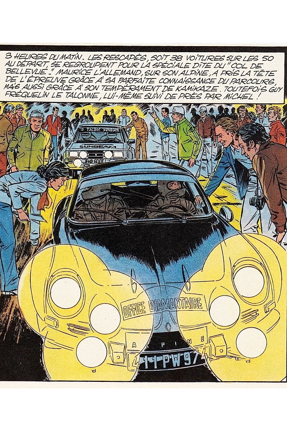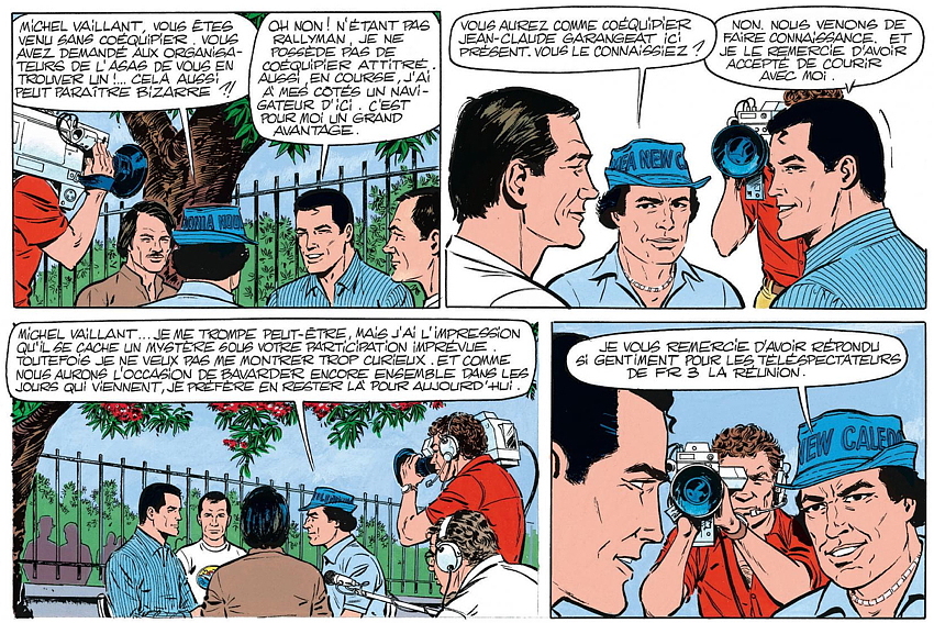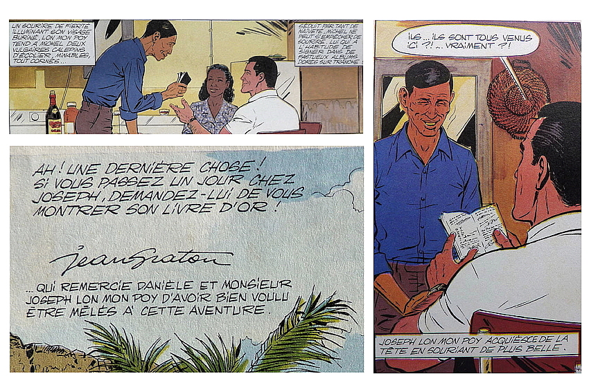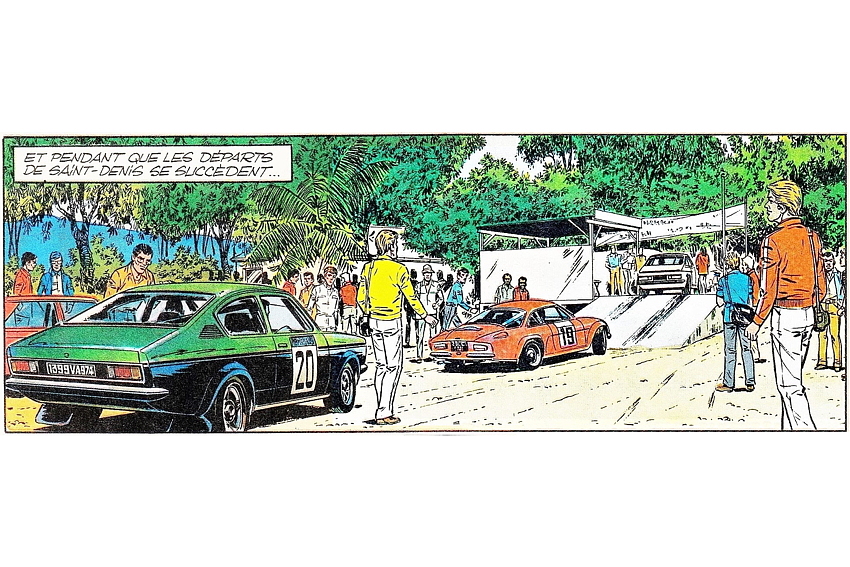On retrouve aussi dans la BD les équipages Maurice Lallemand - Jean-Mary Hoarau, Fréquelin-Jaubert, Télégone - Aubry, Bangui, le journaliste Christian Anicet, célèbre chroniqueur sportif sur RFO, du temps où la station était encore au Barachois, et Joseph Lon-Mon-Poy, chinois des Colimaçons, auquel le 50e Tour Auto (2019) a rendu hommage en lui donnant le nom d’une spéciale. Pour l’anecdote (une parmi des centaines), le dessinateur Jean Graton lui a réellement signé un autographe, que son fils peut d’ailleurs vous montrer à l’occasion, un autographe au nom de Michel Vaillant bien sûr!