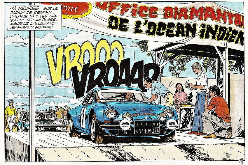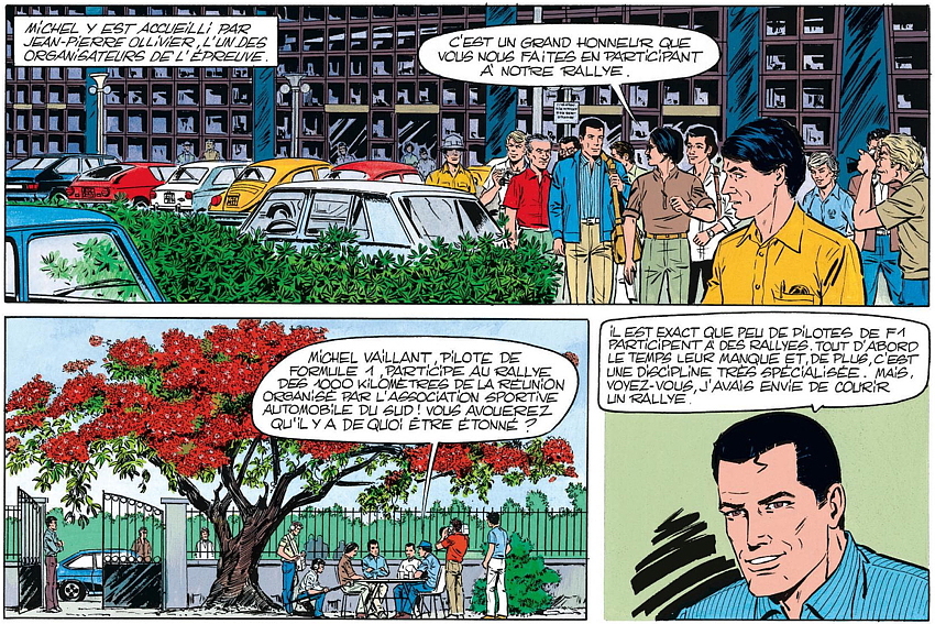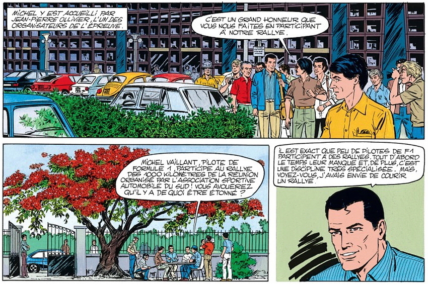 Le tome 39 des aventures de Michel Vaillant est sorti en 1981 et Jean Graton est venu spécialement à La Réunion pour puiser son inspiration de nos paysages, du Rallye des 1000 km et de nos personnages. Il s’était laisser convaincre lors d’un salon automobile à Paris par Jean-Pierre Ollivier et «doudou» Bangui. Jean Graton a eu la chance de suivre l’édition 1979 du rallye, qui, exceptionnellement, comportait une spéciale au volcan, remportée d’ailleurs par Idriss Affejee sur Ford RS 2000 (d’où la couverture).