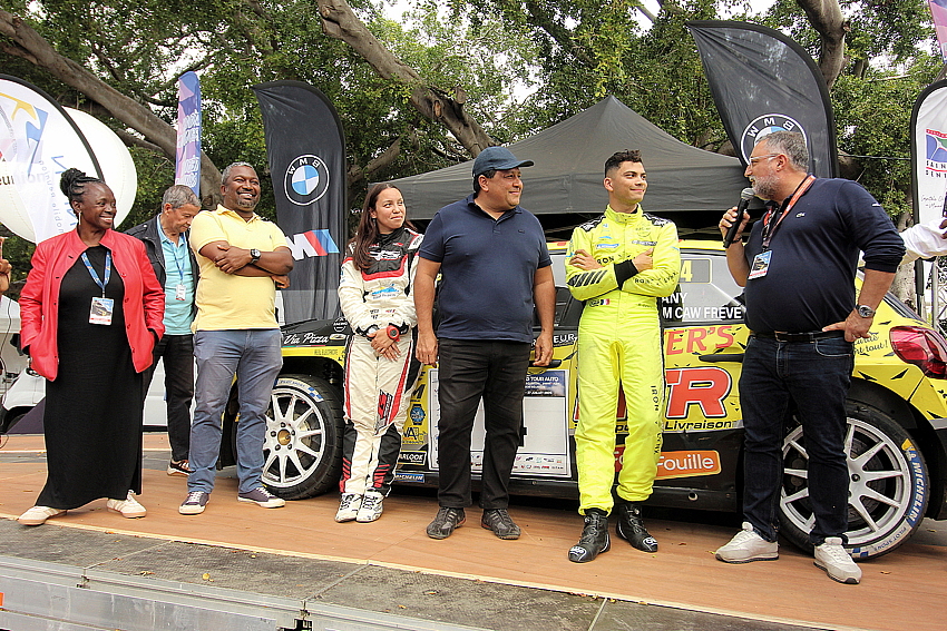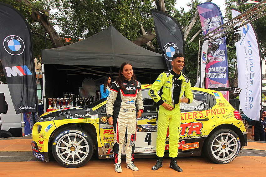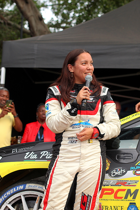 Le public a aussi suivi avec attention les début d’une petite nouvelle, Stéphanie RAJOEL, la fille de la présidente de l’ASA Réunion, qui pour une fois vit le rallye non pas du côté de l’organisation mais dans le baquet de droite d’une Honda Civic Type R (évidemment), pilotée par Eliott GANDON. Pour rappel, Stéphanie est ingénieure en systèmes embarqués et travaille depuis un an pour le prestigieux team Boutsen VDS, du pilote belge de formule 1 Thierry Boutsen et Marc Vander Straten (vainqueur des 24 H de Spa en 2015).