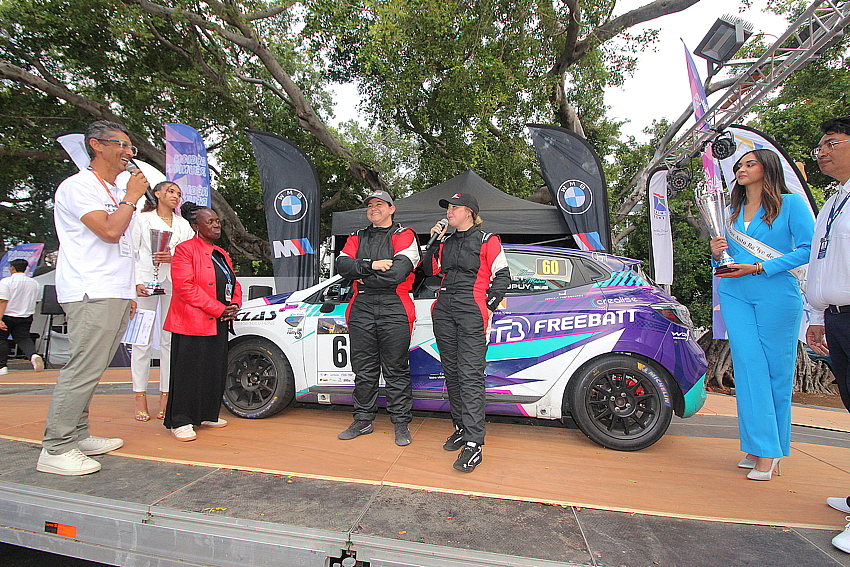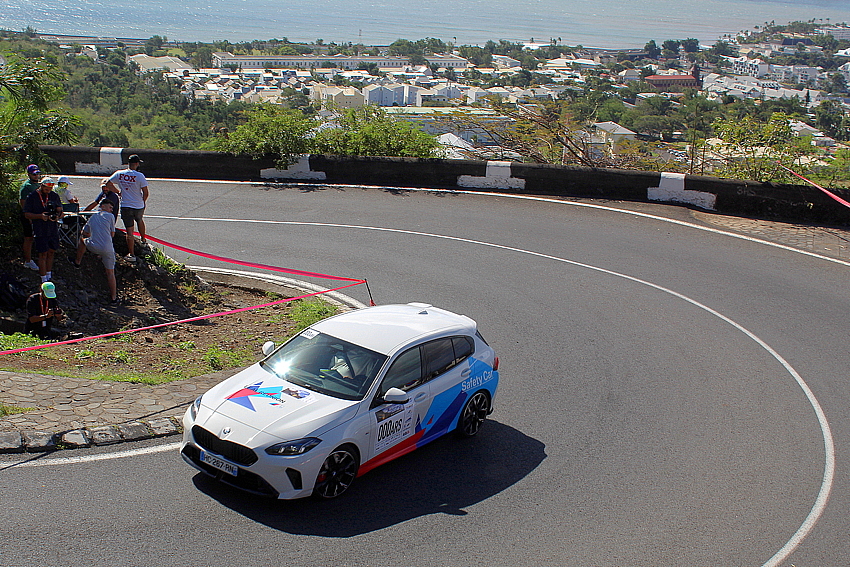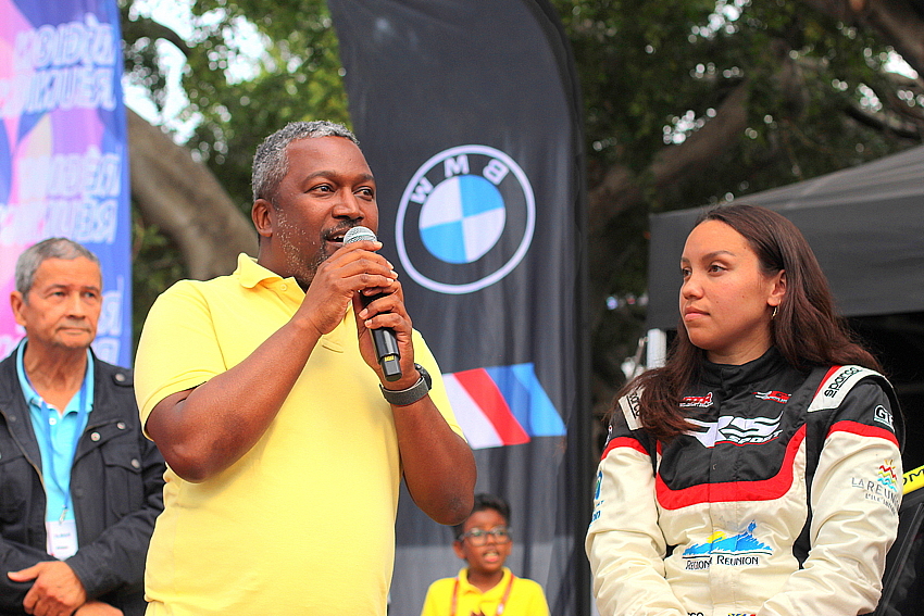 Nisha Ingar et Anna Goupil des Paillières, du service communication et marketing de Leal Réunion ont pris son rôle très au sérieux, en prenant des cours de pilotage avec Malik Unia, qui est certainement le pilote avec le plus beau style au volant, dessinant des trajectoires aussi esthétiques que le mouvement d’un athlète de saut à la perche, un sport qu’il pratiquait autrefois.