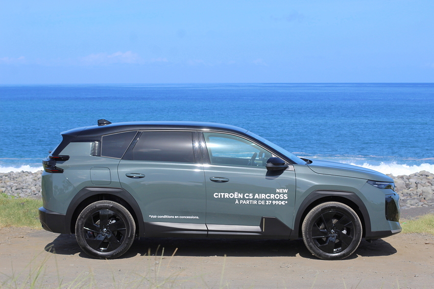 Le C5 Aircross 2e génération tient ses promesses. C’est un bon gros SUV (segment C-SUV) qui emmène avec style et très confortablement 5 personnes, avec leurs bagages, ce qui en fait la voiture idéale pour les vacances en famille et aussi une voiture idéale pour les taxis, VTC et loueurs. Comme c’est une hybride, pas de soucis de recharge (le point faible des électriques, surtout à La Réunion, où les bornes sont en nombre insuffisant, avec des tarifs élevés et assez souvent en panne).