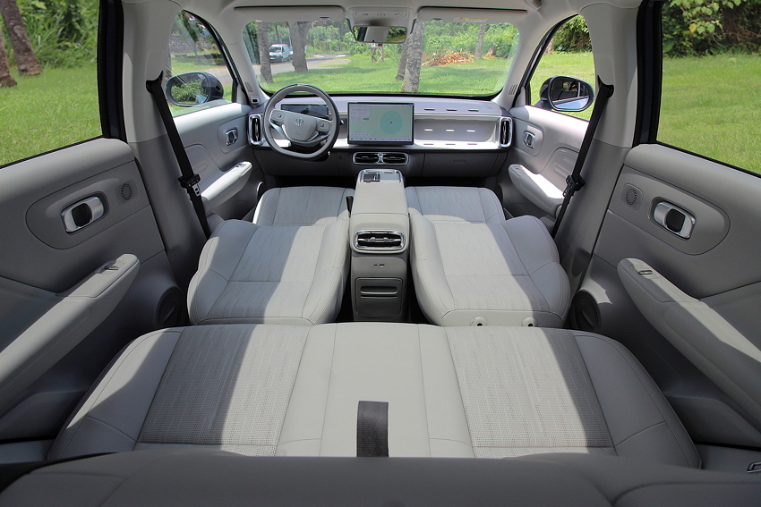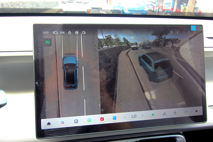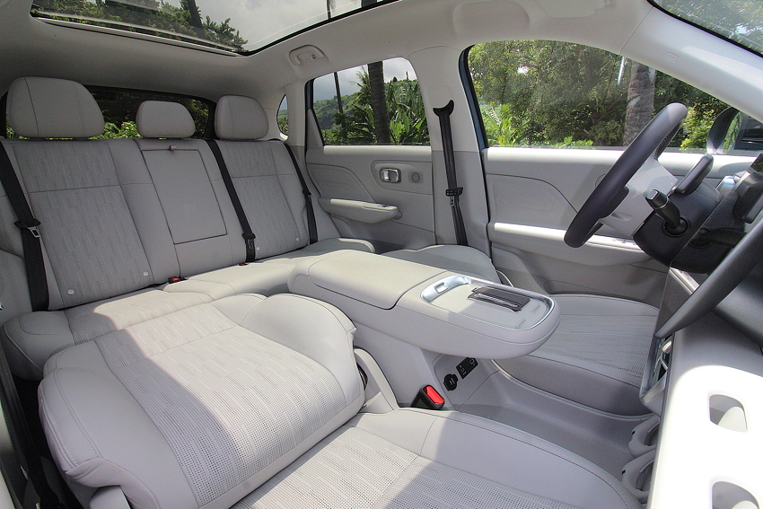 Le B10 est incroyablement confortable à l’arrêt mais aussi en mouvement. C’est une électrique, propulsion, donc c’est vif et la direction est très agréable. Les sièges avant offrent un maintien correct mais ils offrent surtout, de série, la ventilation-climatisation dans le dos, ce qui en pleine saison cyclonique à La Réunion, avec une température extérieure qui dépasse les 30° et une forte humidité, est un atout inestimable.